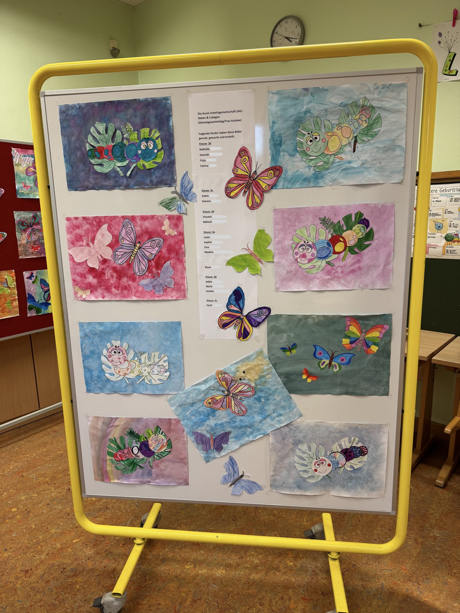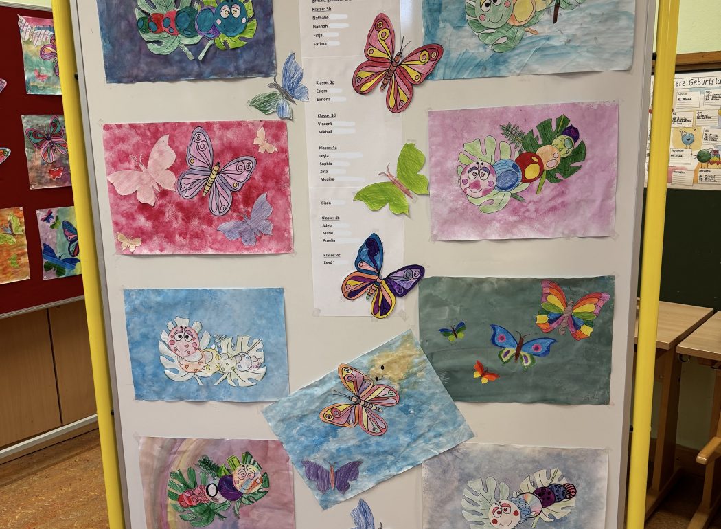 Alle Kinder konnten so richtig kreativ sein und es entstanden wunderbare Bilder zu folgenden Themen: „Die kleine Raupe Nimmersatt“ und „Die bunte Welt der Schmetterlinge“.